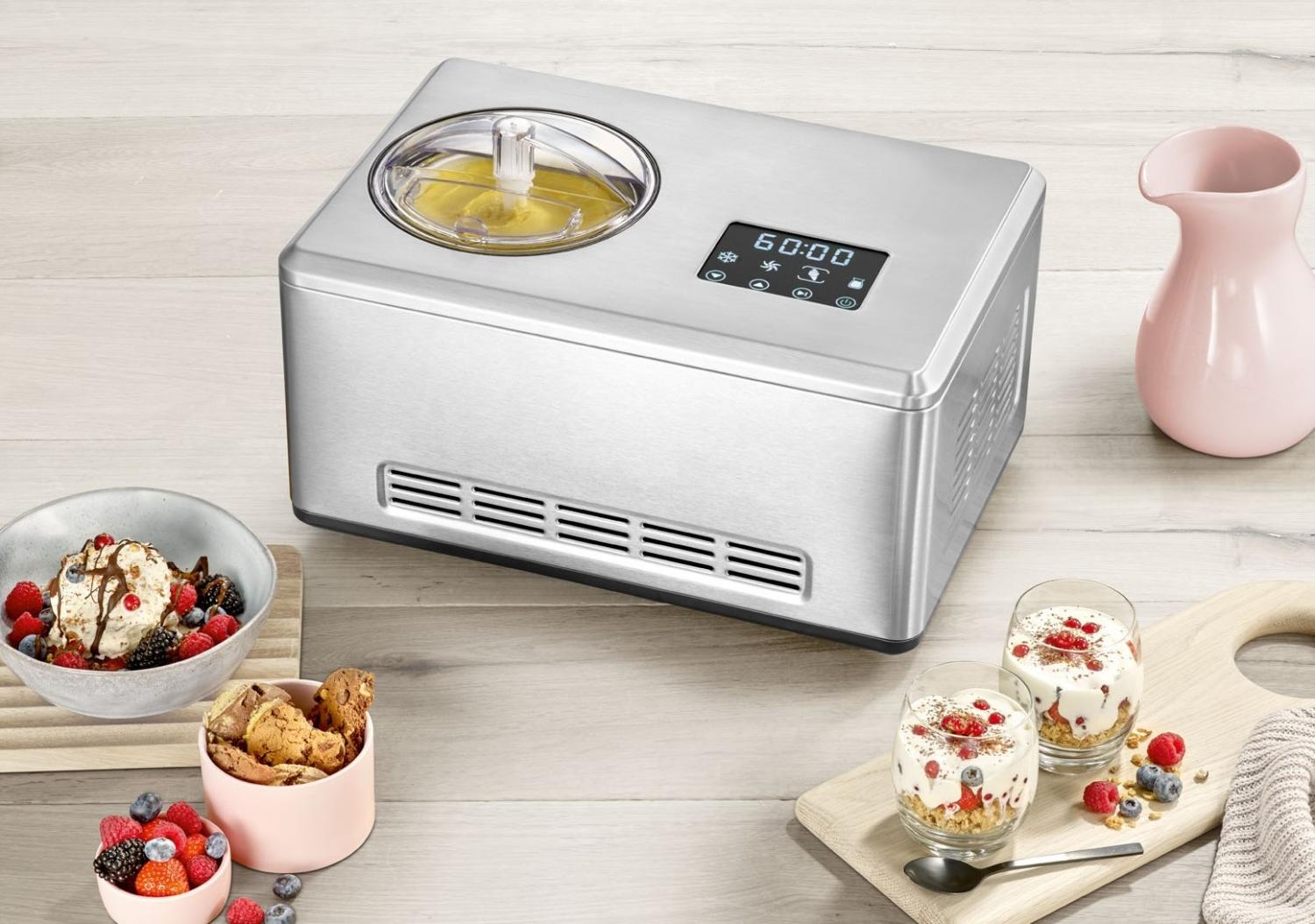 Hög prestanda och stor kapacitet: Med en effekt på 180W och en total kapacitet som stödjer stora sällskap är detta maskinen för den seriösa glassentusiasten. Skapa allt från krämig italiensk gelato och sorbet till frozen yoghurt och veganska alternativ.