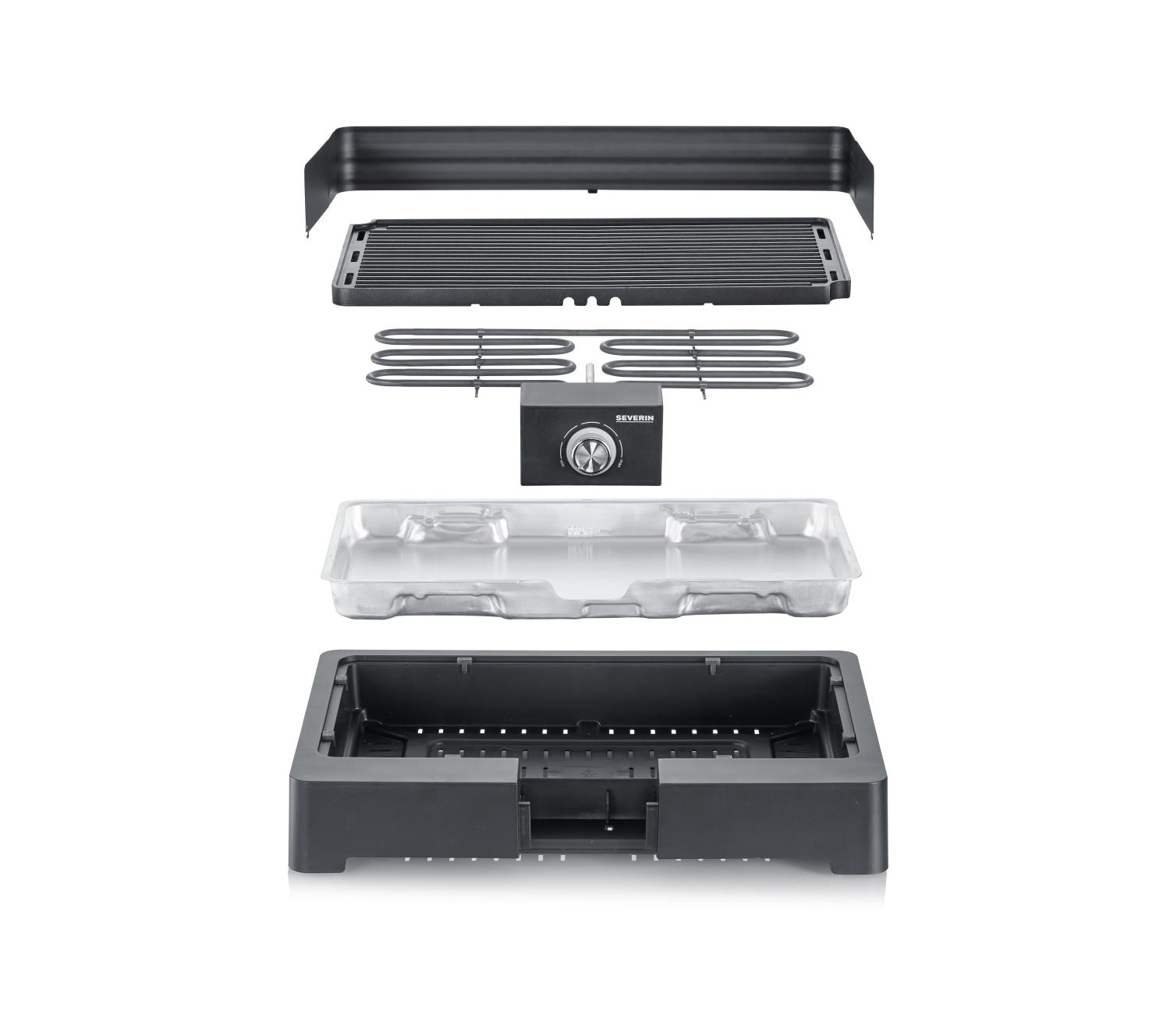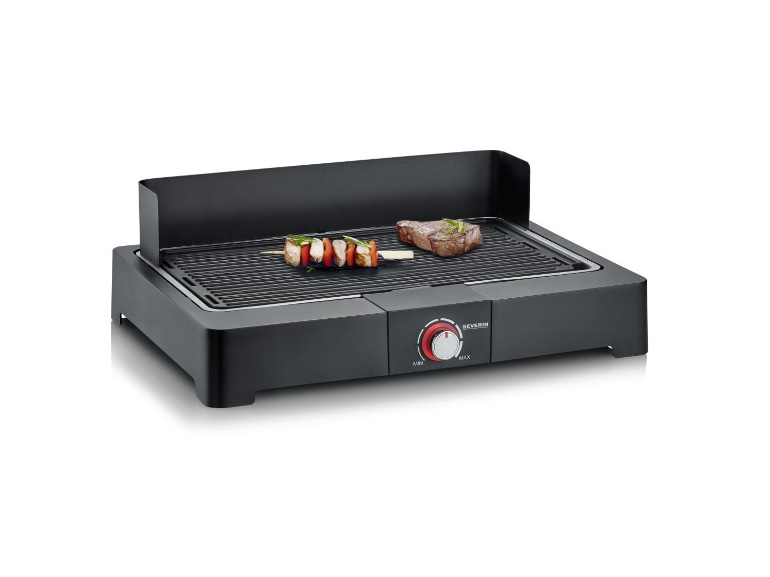 Kompakt och kraftfull bordsgrill på 2200W med en robust grillplatta i gjuten aluminium och vindskydd – den optimala lösningen för snabb och rökfri grillning direkt på bordet eller balkongen.