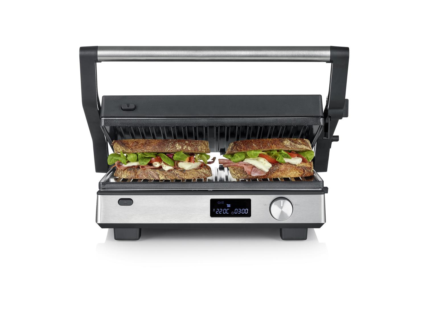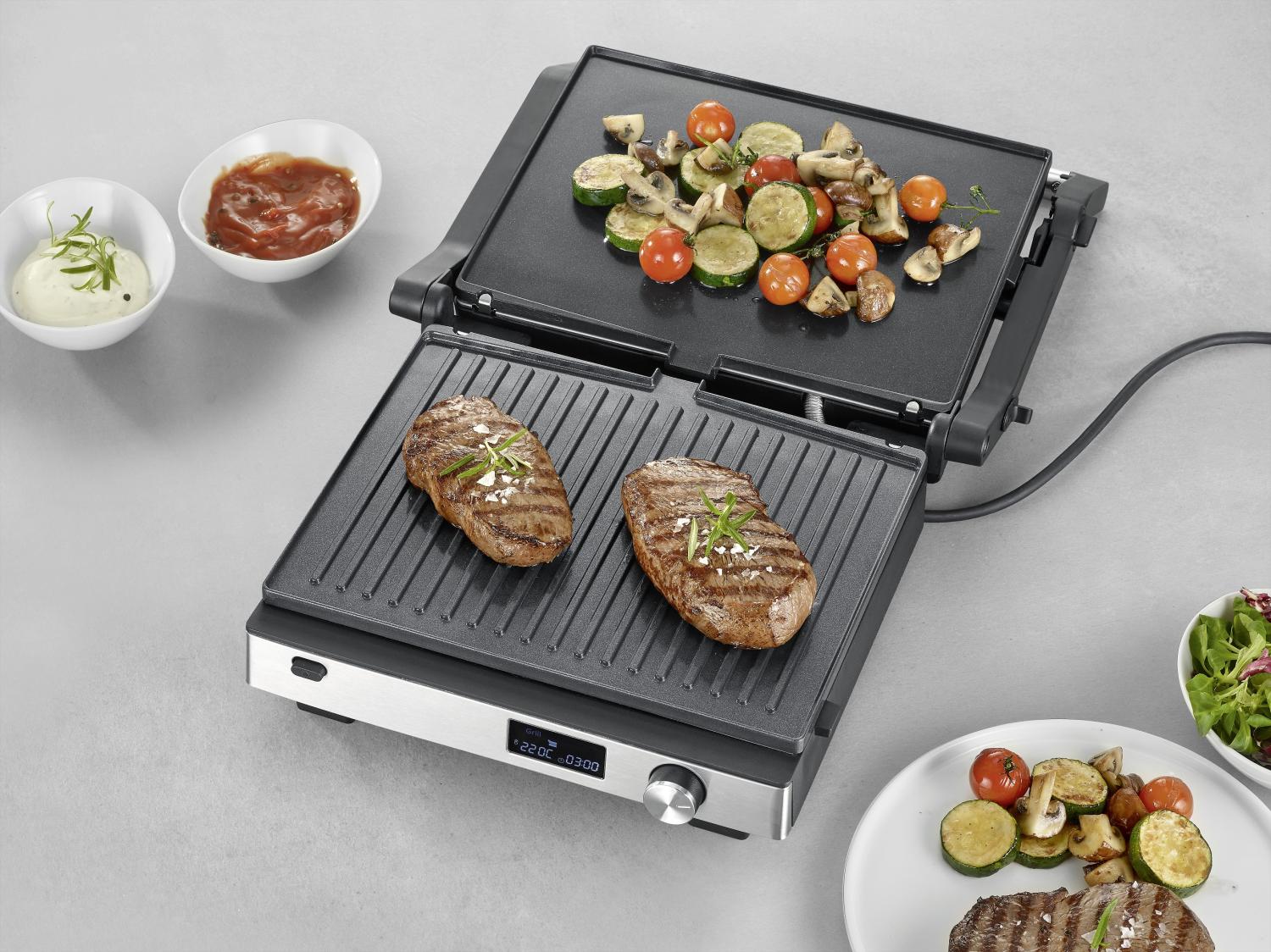 Högpresterande och precis: Med en effekt på 2000W och en maxtemperatur på 220 °C får du perfekta grillresultat varje gång. Den digitala LED-displayen låter dig styra både temperatur och den inbyggda timern med hög precision.