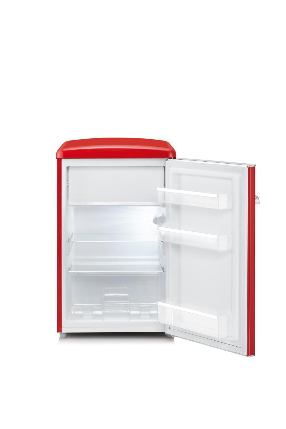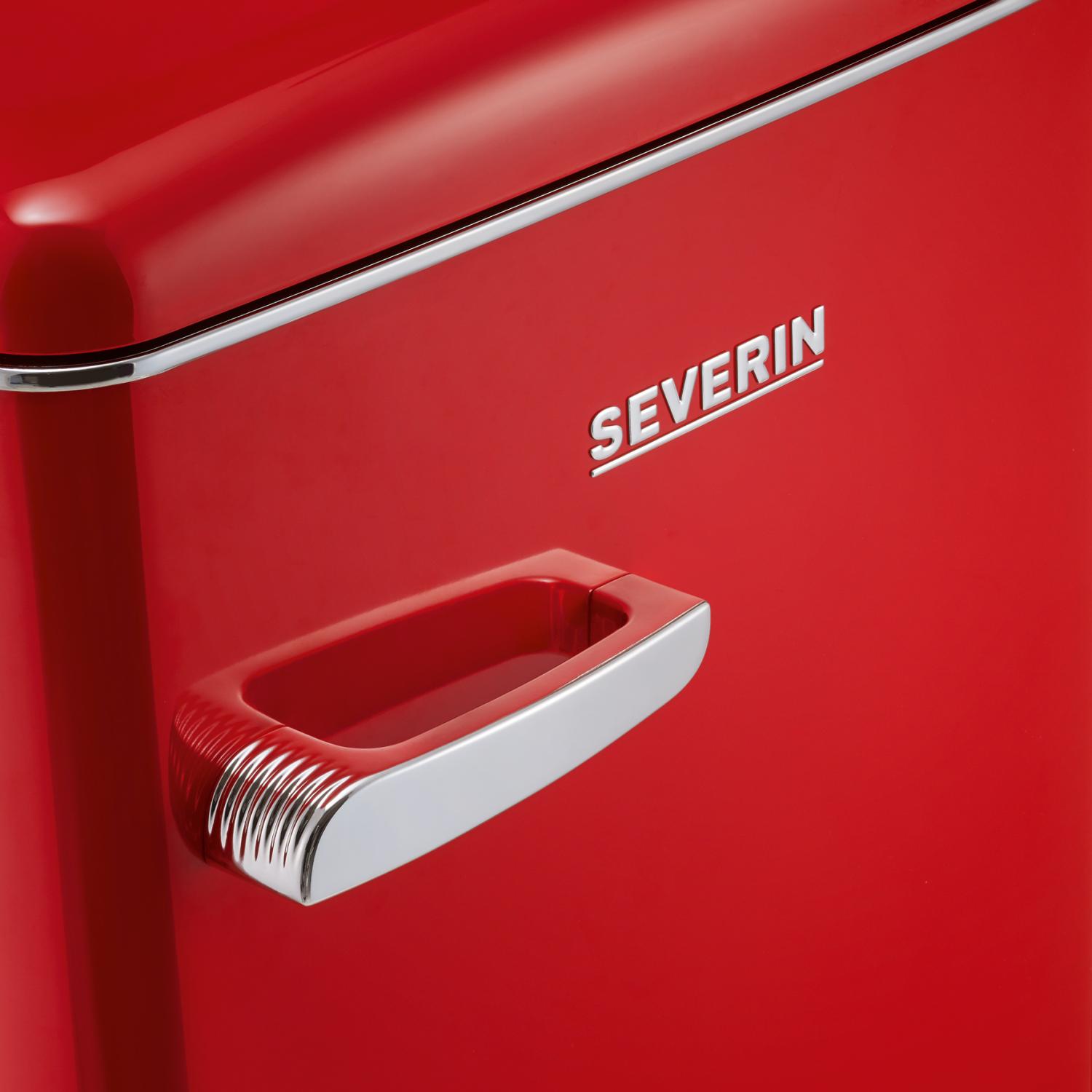 Ge ditt kök en dos 50-talsnostalgi med Severin RKS 8830 – ett läckert rött retrokylskåp i energiklass D som kombinerar ikonisk design med modern teknik och ett integrerat frysfack.